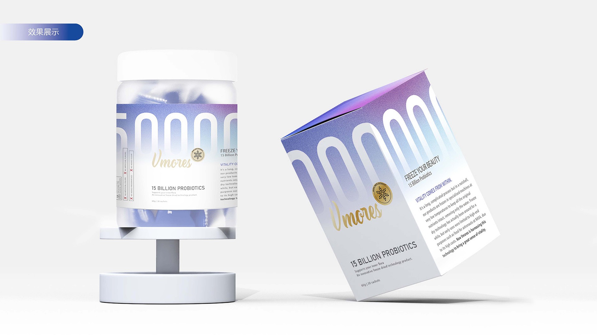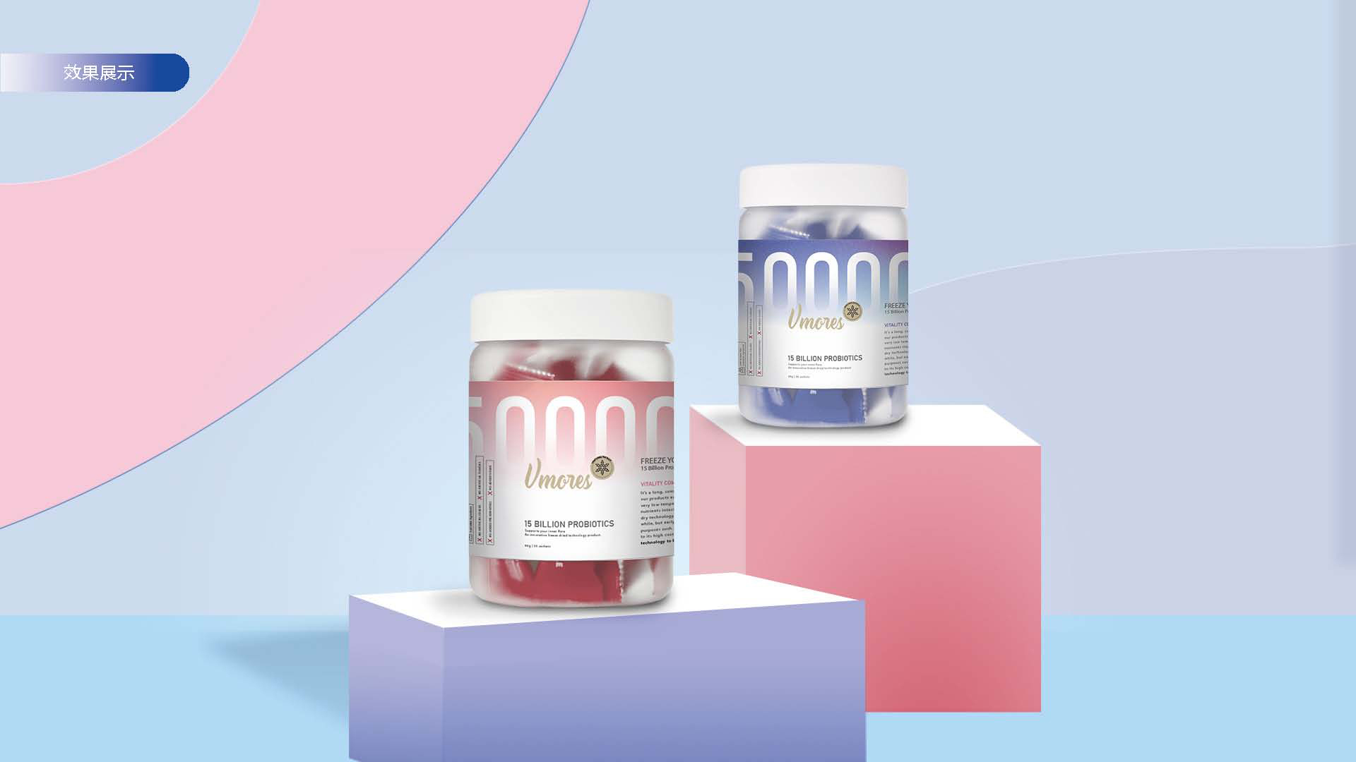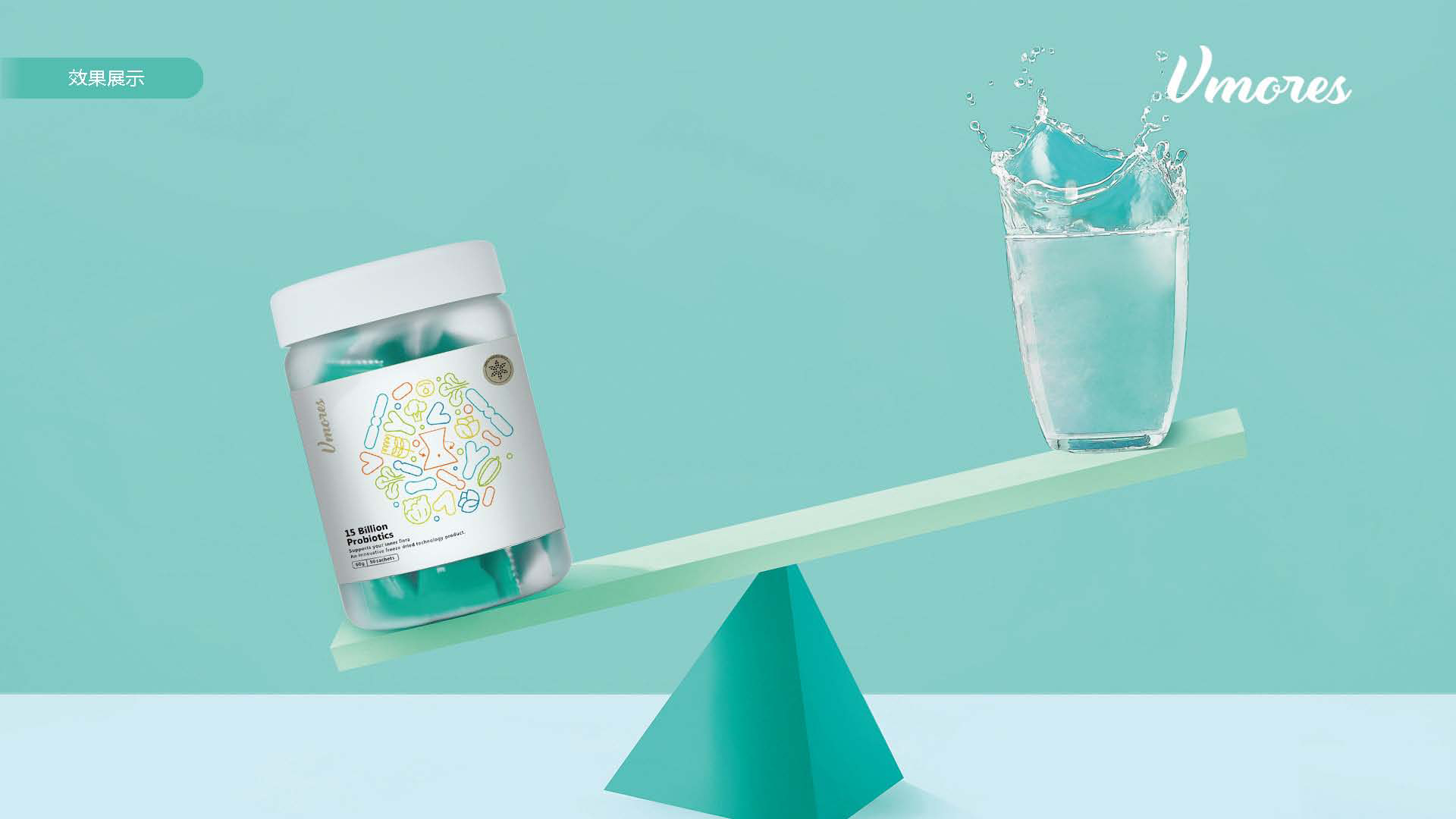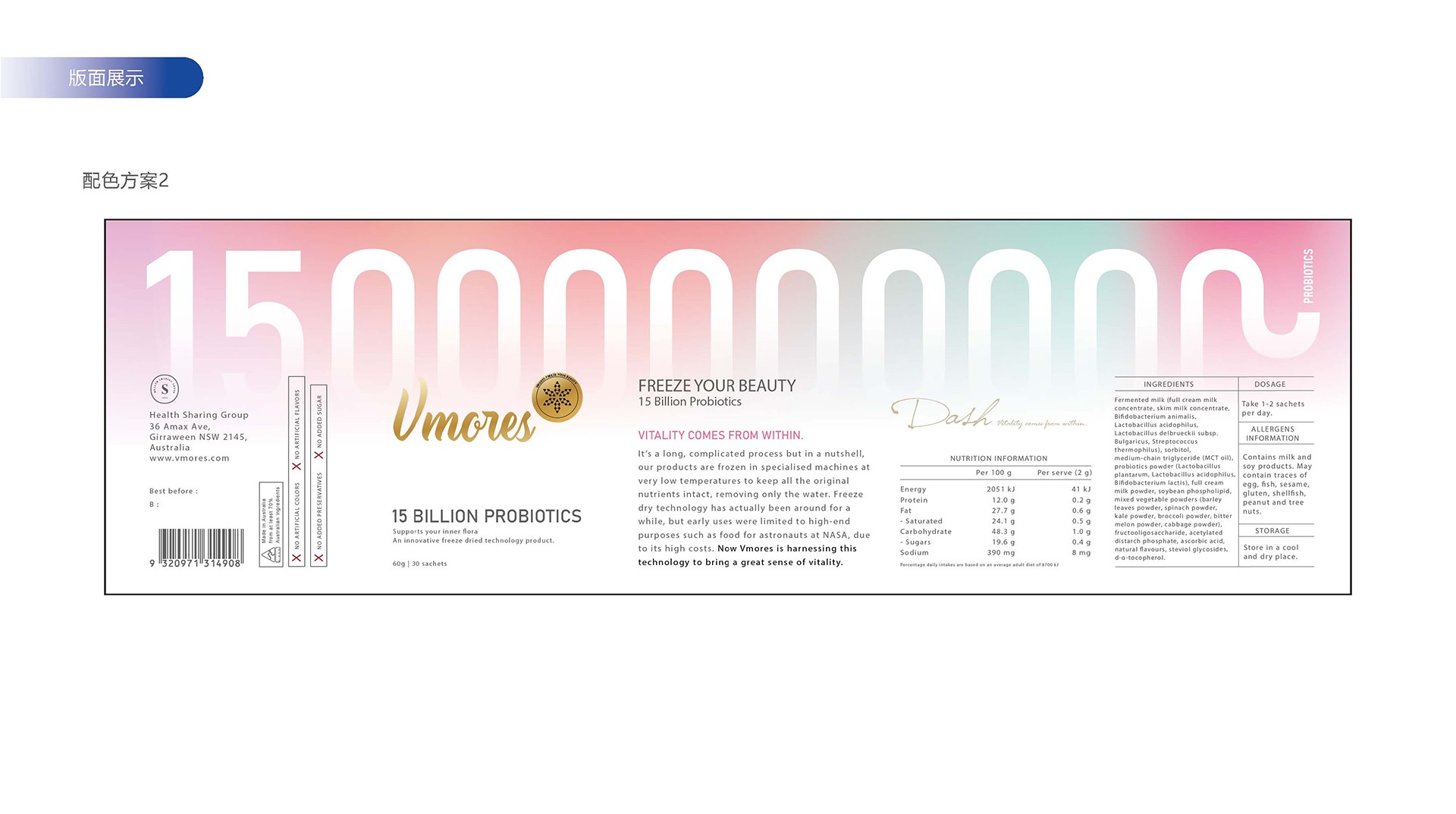 突出150億益生菌,以大額數(shù)字吸引眼球;將數(shù)字設(shè)計(jì)成腸道形狀,表現(xiàn)“瘦子菌”是腸道中的有益菌群,產(chǎn)品有益與腸道的功效;整體使用多彩的漸變色,符合產(chǎn)品調(diào)性及目標(biāo)群眾的審美。此款包裝設(shè)計(jì)將產(chǎn)品效果和成分,以抽象的形式表現(xiàn)出來(lái),插圖中心是瘦身效果,為產(chǎn)品功效,周?chē)侨N有益菌群,六種超級(jí)蔬菜的組合;說(shuō)明產(chǎn)品營(yíng)養(yǎng)健康,配色清新活波,較為年輕化。